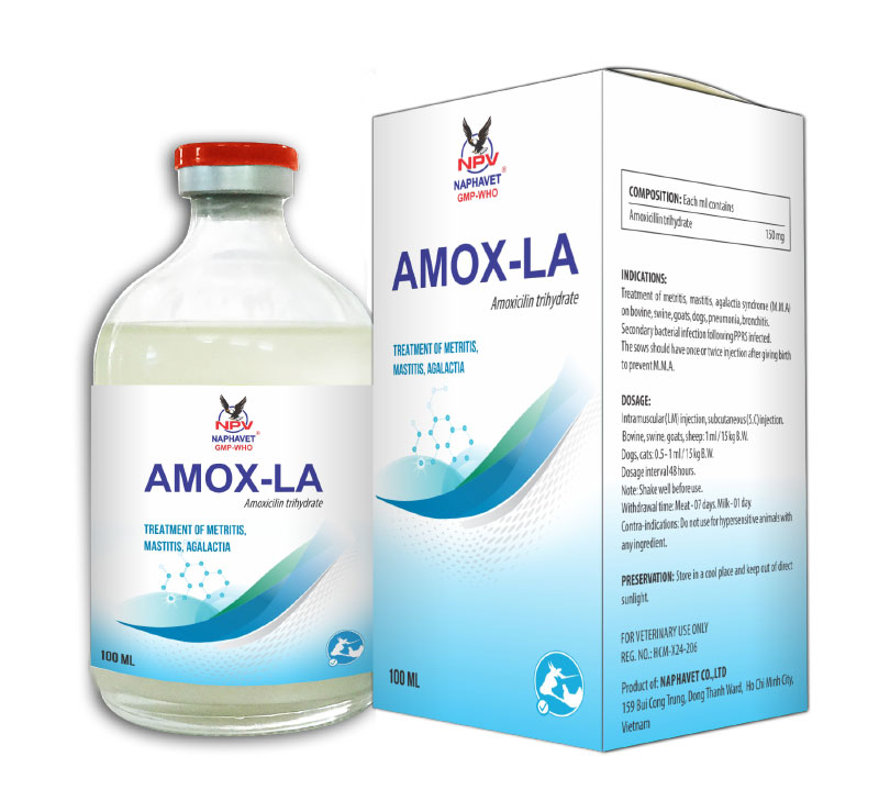 Amox LA is effective against infections of the alimentary tract, respiratory tract, urogenital tract, coli-mastitis and secondary bacterial infections during the course of a viral disease in horses, cattle, pigs, sheep, goats, dogs and cats.