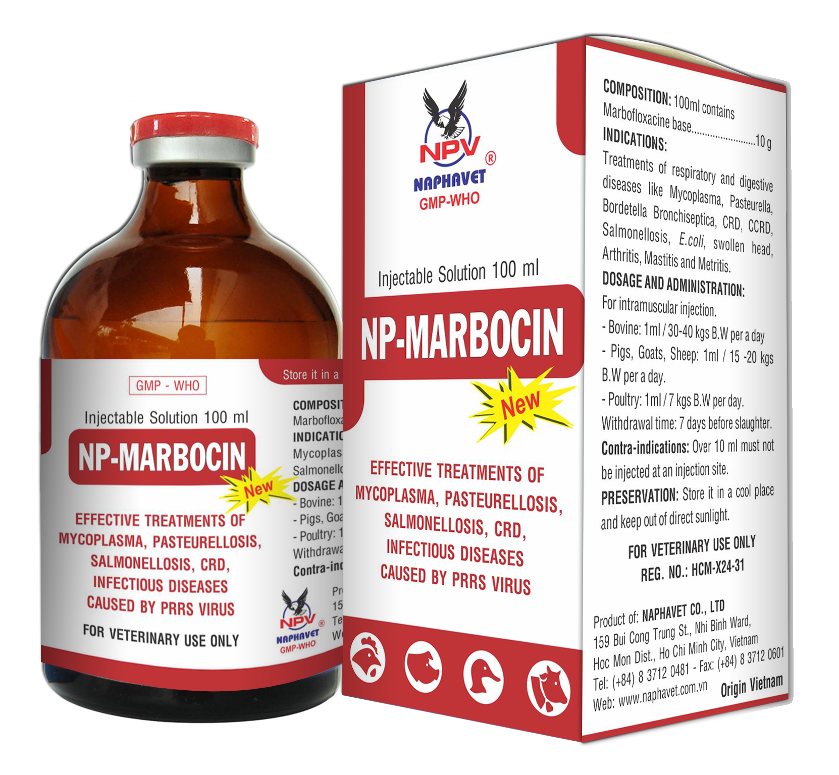 - Pigs, Goats, Sheep: 1 ml / 15 - 20 kg B.W per a day.