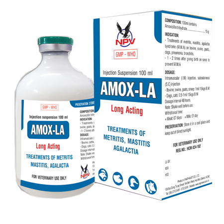 Amox LA is effective against infections of the alimentary tract, respiratory tract, urogenital tract, coli-mastitis and secondary bacterial infections during the course of a viral disease in horses, cattle, pigs, sheep, goats, dogs and cats.