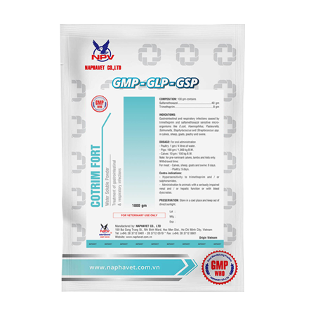 Gastrointestinal and respiratory infections caused by trimethoprim and sulfamethoxazol sensitive micro-organisms like E. coli, Haemophilus, Pasteurella, Salmonella, Staphylococcus and Streptococcus spp. in calves, sheep, goats, poultry and swine.