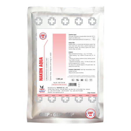 INDICATION: NAKON AQUA is a concentrated disinfectant powder that when mixed with water forms a powerful cleaning and disinfecting solution with efficacy against fish viruses, bacteria, fungi, and molds.