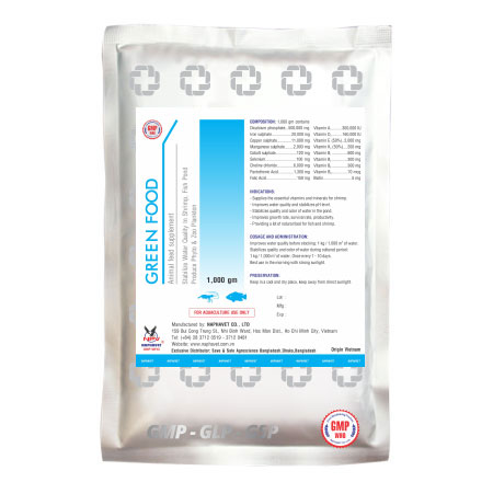 - Improves water quality before stocking: 1 kg / 1,000 m3 of water.