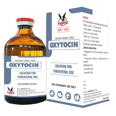 For treatment of weak pain in the course of delivery, lactation failure in sows (Mastitis, Agalactia), Uterus Atonia, retention of the placenta, postpartum haemorrhage, prolapse of the uterus, Atonia of the intestines and the urinary bladder, postpartum Agalactia and torsion of the gravid uterus.