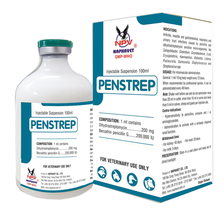 Arthritis, mastitis and gastrointestinal, respiratory and urinary tract infections caused by penicillin and dihydrostreptomycin sensitive micro-organisms, like Campylobacter, Clostridium, Corynebacterium, E. coli, Erysipelothrix, Haemophilus, Klebsiella, Listeria, Pasteurella, Salmonella, Staphylococcus and Streptococcus spp.