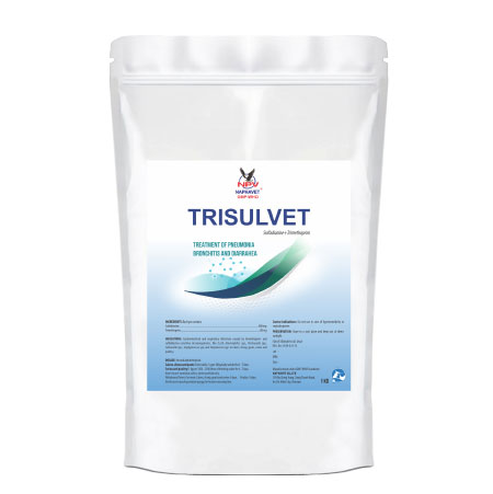 Gastrointestinal and respiratory infections caused by trimethoprim- and sulfadiazine-sensitive microorganisms, like E. coli, Haemophilus spp., Pasteurella spp., Salmonella spp., Staphylococcus spp. and Streptococcus spp. in calves, sheep, goats, swine and poultry.