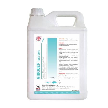 - Eliminate bacteria, virus, fungi which are causes of diseases as haemorrhage, liver necrosis, tails necrosis, reduce slime coat…, prevent the spread of agents.